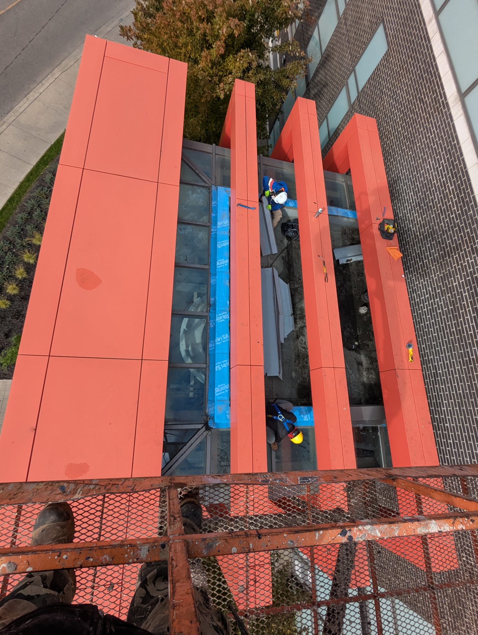 Investigated leaks and repaired curtain wall with new barriers, brick, and flashing.