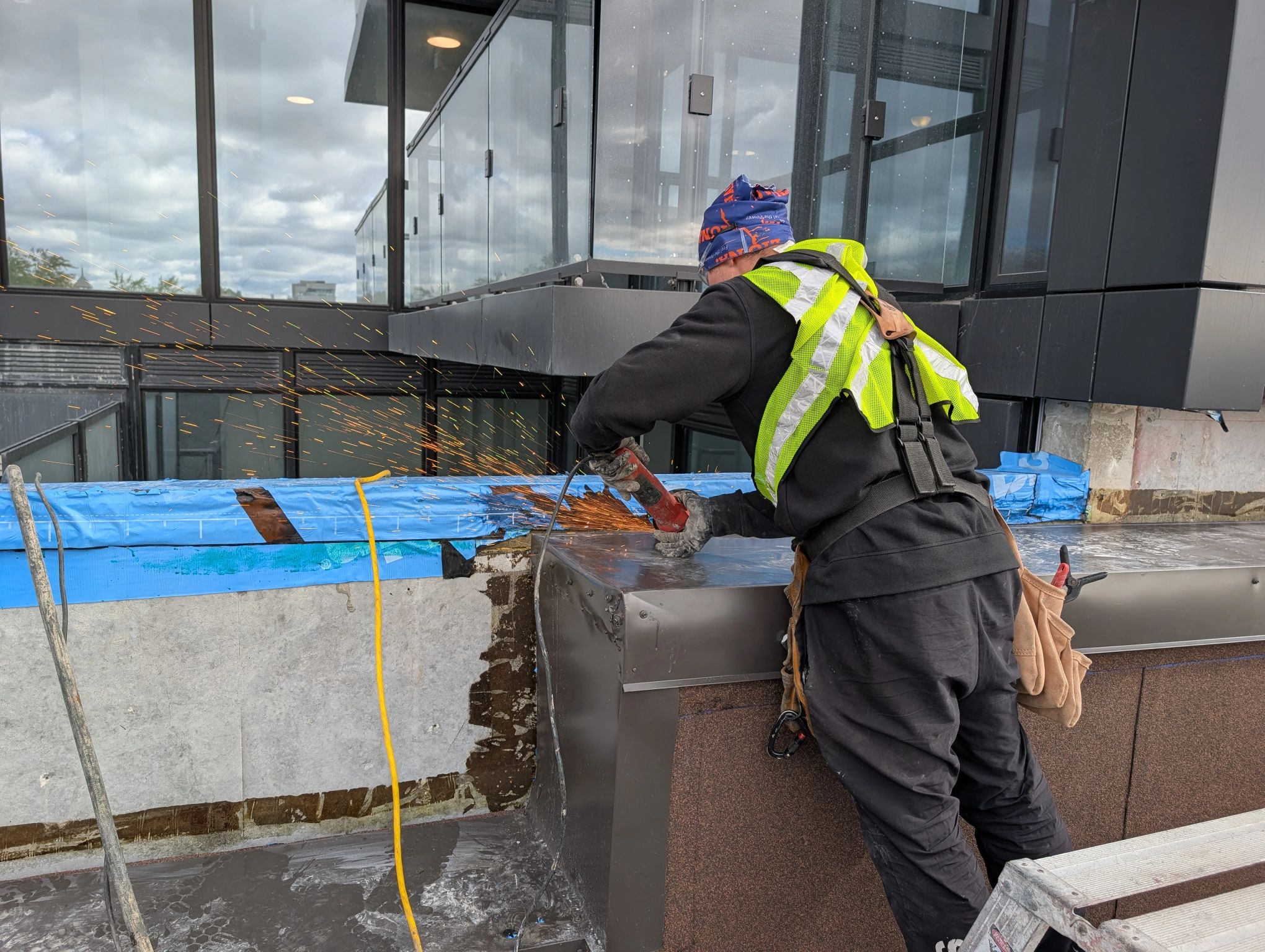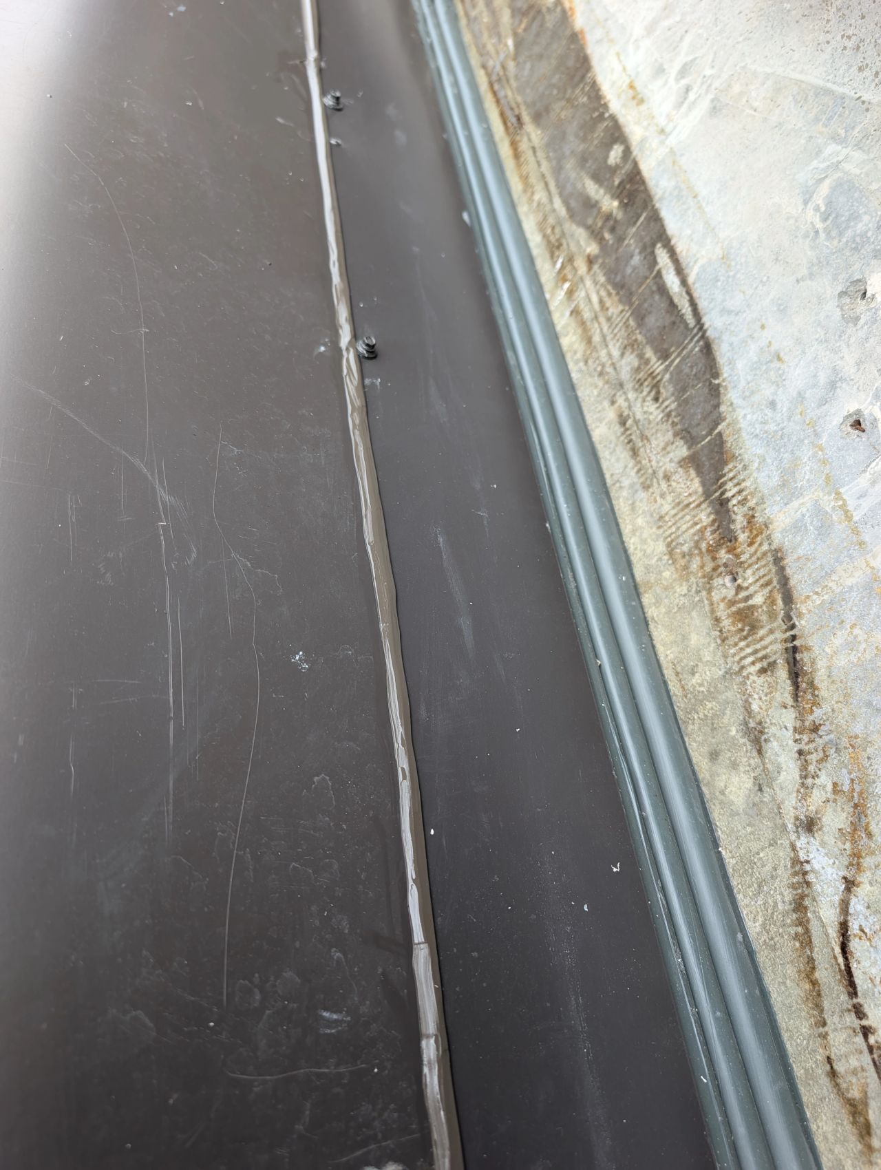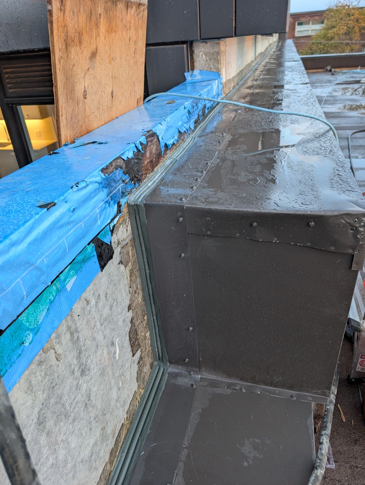 In order to install the Emseal we had to cut the existing flashing and rebuild it to create enough surface for the joint to seal.properly.